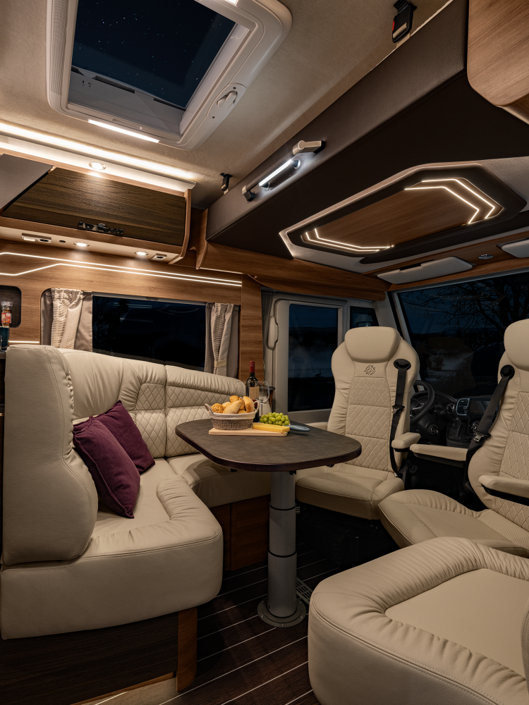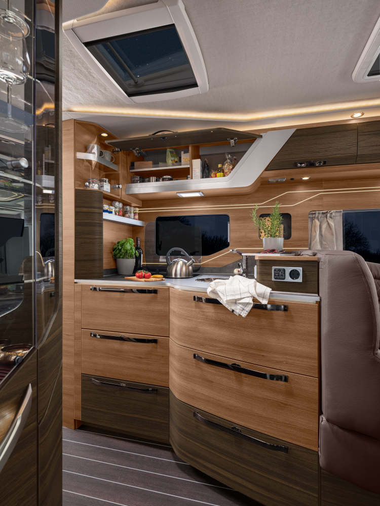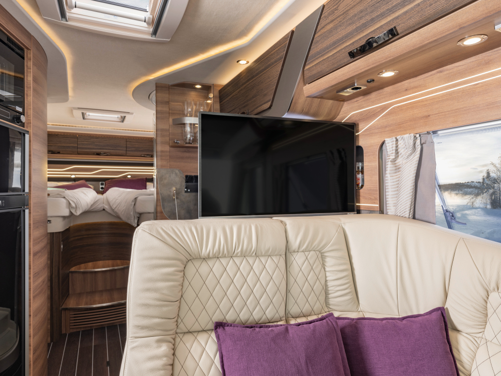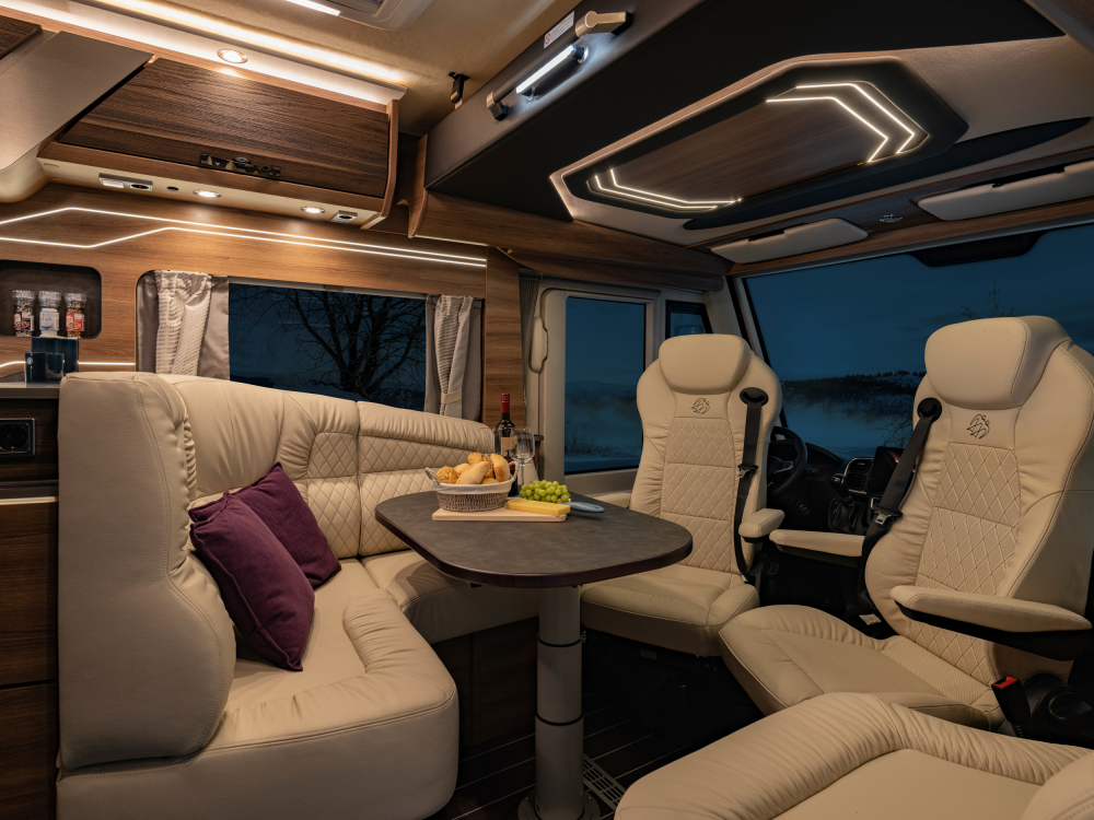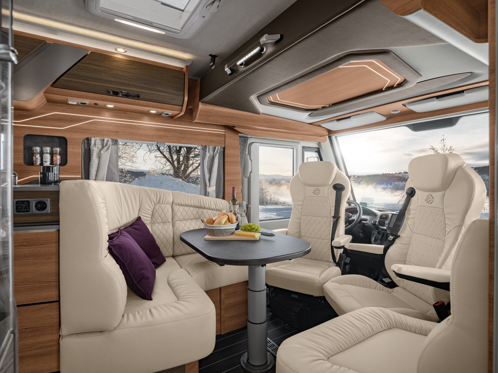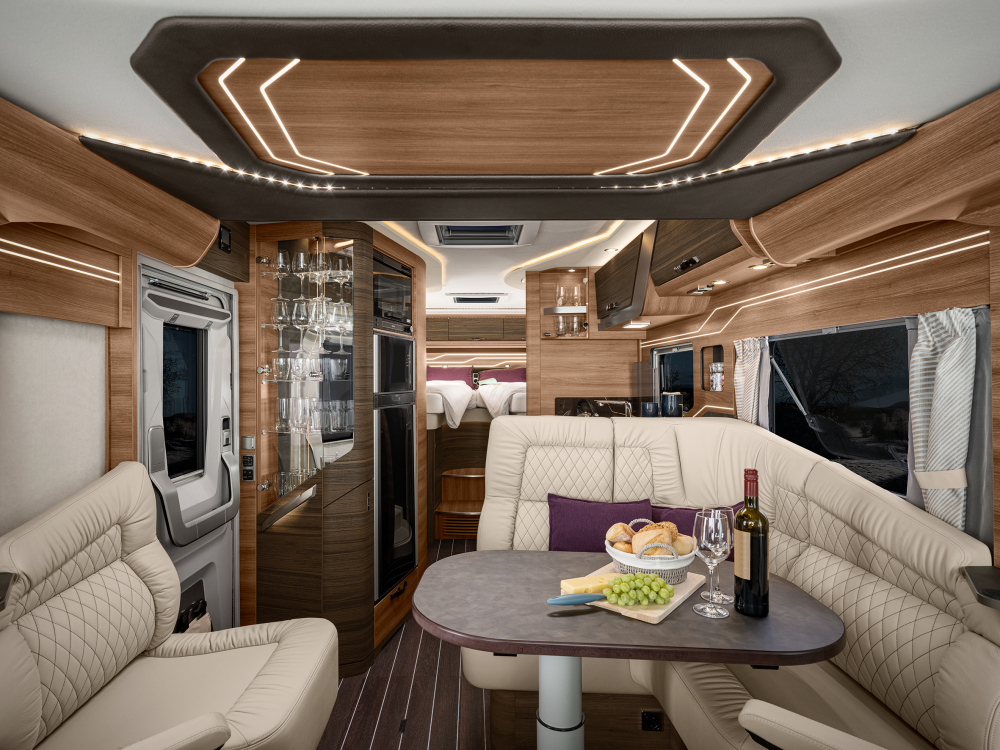 Volmaakt tot in het detail presenteren wij onze luxe liner. Met een voorkant en dynamisch exterieur beleeft u luxe die inspireert en sportieve elegantie die indruk maakt – zowel op lange ritten op de snelweg in het noorden als op bochtige provinciale wegen in het zuiden. Naast zijn imposante exterieuruitstraling overtuigt de SUN I echter ook met een stralend interieurdesign, zoals de verwarmbare dubbele vloer in Yacht‐look of de hoogwaardige lederen uitrusting. Stap en – en word met één oogopslag verliefd.