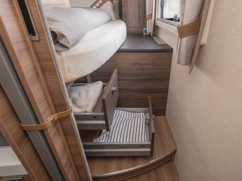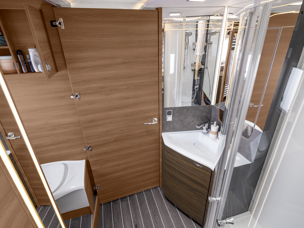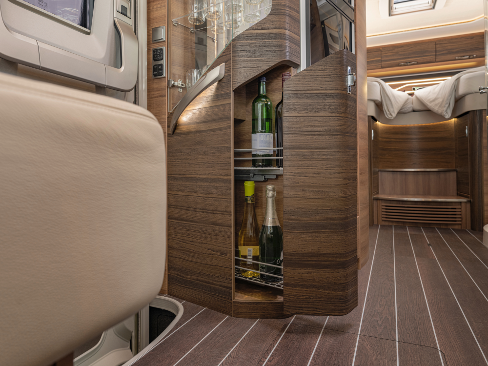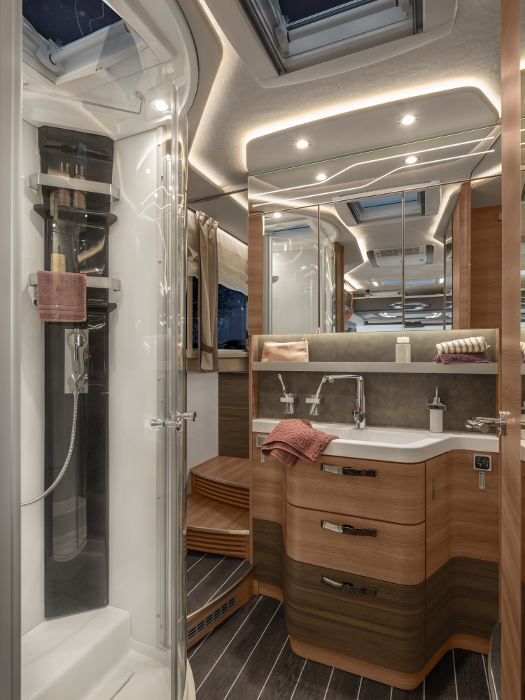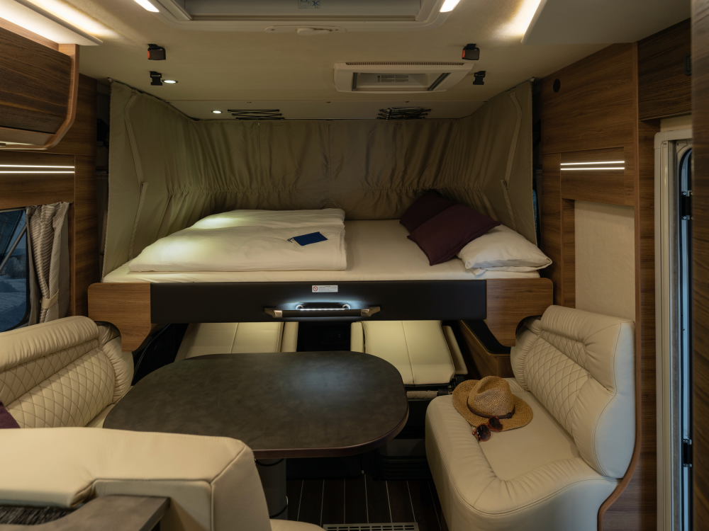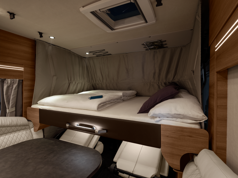 Volmaakt tot in het detail presenteren wij onze luxe liner. Met een voorkant en dynamisch exterieur beleeft u luxe die inspireert en sportieve elegantie die indruk maakt – zowel op lange ritten op de snelweg in het noorden als op bochtige provinciale wegen in het zuiden. Naast zijn imposante exterieuruitstraling overtuigt de SUN I echter ook met een stralend interieurdesign, zoals de verwarmbare dubbele vloer in Yacht‐look of de hoogwaardige lederen uitrusting. Stap en – en word met één oogopslag verliefd.