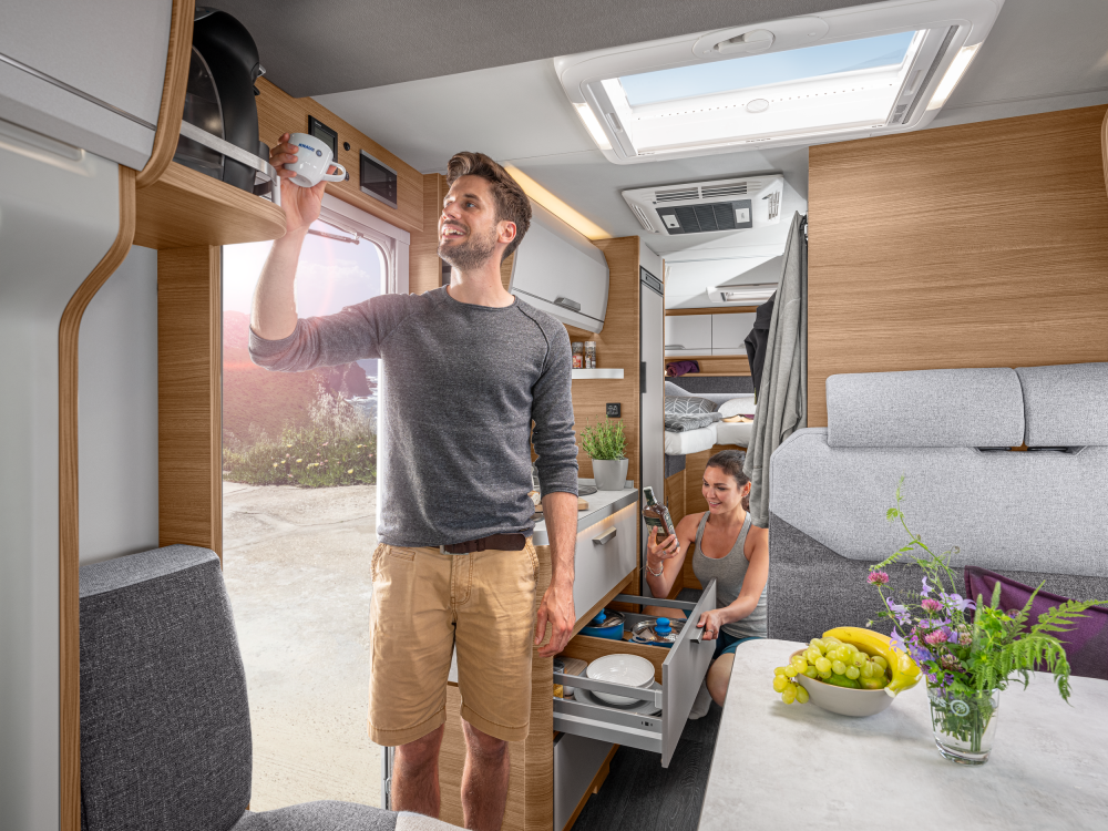 Wij hebben de KNAUS VAN TI groot genoeg gemaakt voor een echt campergevoel, maar compact genoeg voor bochtige wegen aan de kust. De smalle, volledig uitgeruste camper is slechts 2,20 meter breed en inspireert als lichtste voertuig in zijn klasse iedereen die waarde hecht aan een hoog extra laadvermogen. Waarschijnlijk een van de zeer weinige bezienswaardigheden onder 3,5 ton!